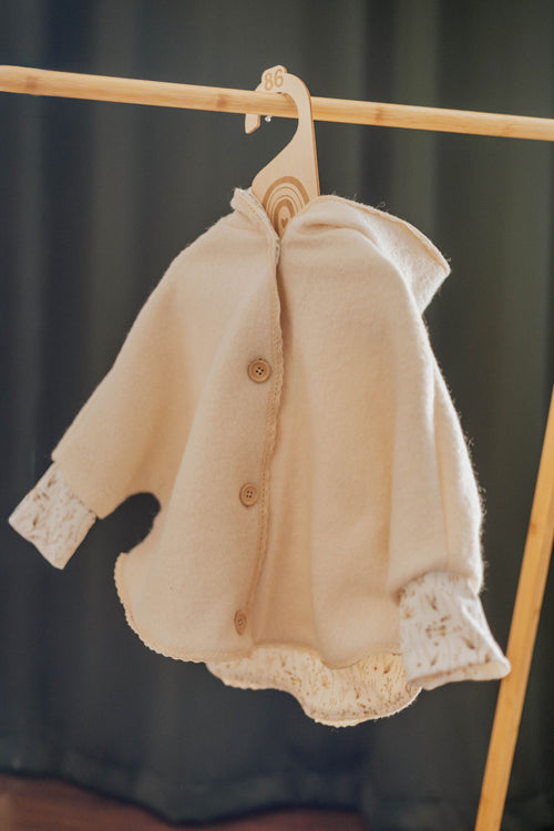 Babyjacke Mädchen 86 – Handgemachte Babyjacke Beige mit Spitze – Baby Cardigan – Mädchen Jacke – Geschenk zur Geburt – Baby Kleidung