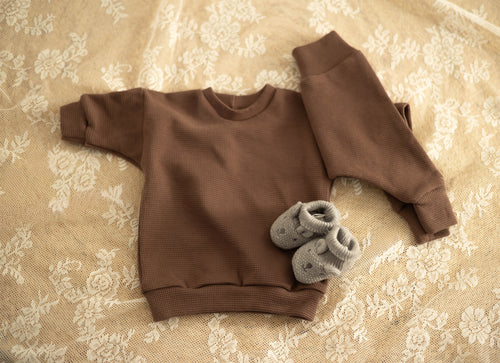 Oversized Sweatshirt mit Pumphose - Waffeljersey Braun - Größe 50/56 - Handgemacht